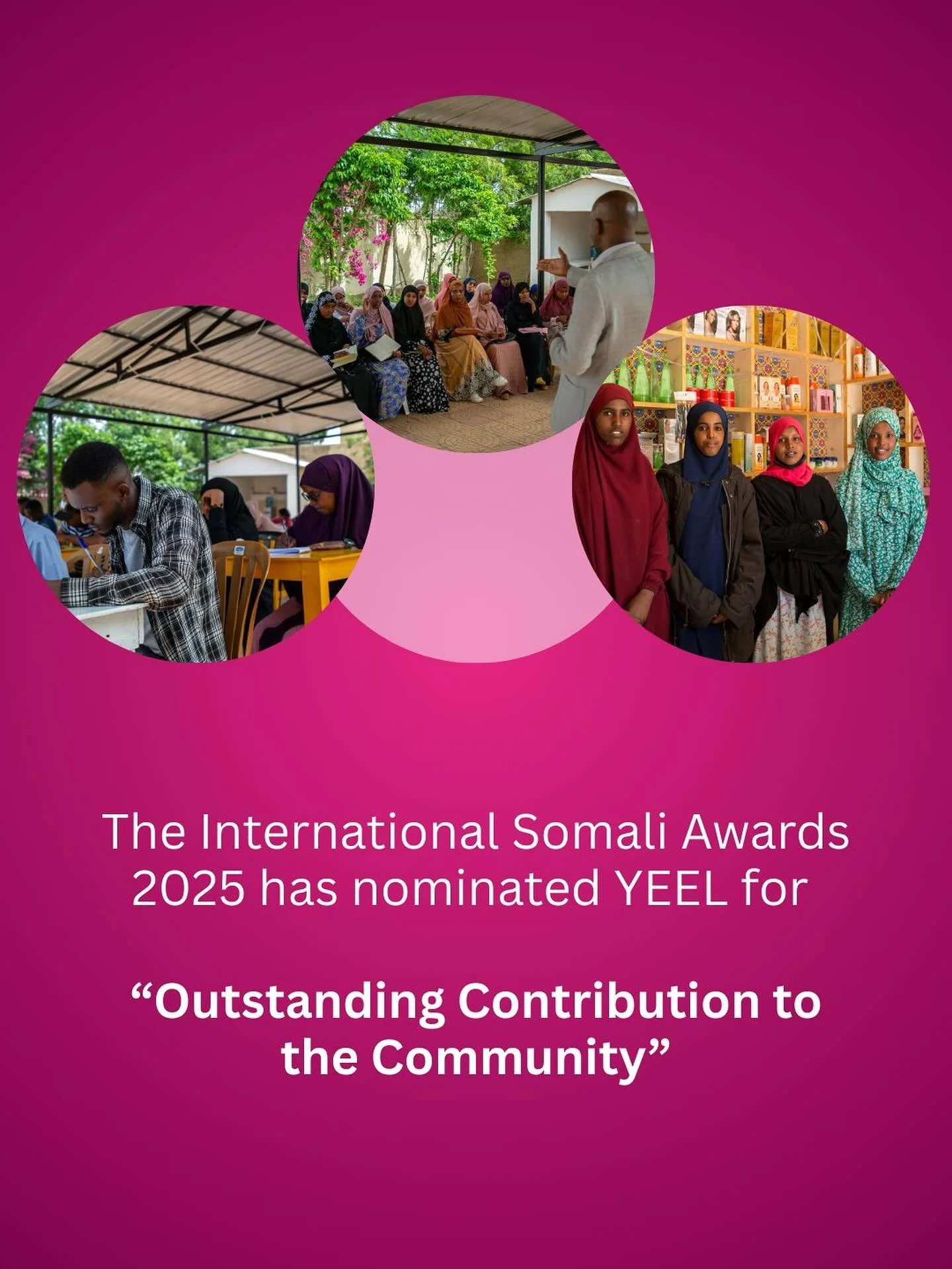 The International Somali Awards has nominated YEEL for “Outstanding Contribution to the Community.” This recognition reflects our many years of giving youth skills, resources, and jobs.